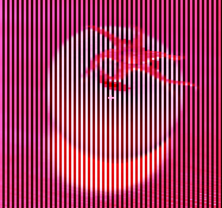 When observers move toward the image during fixating at the center, an illusory 'heart' with radial arms is observed.