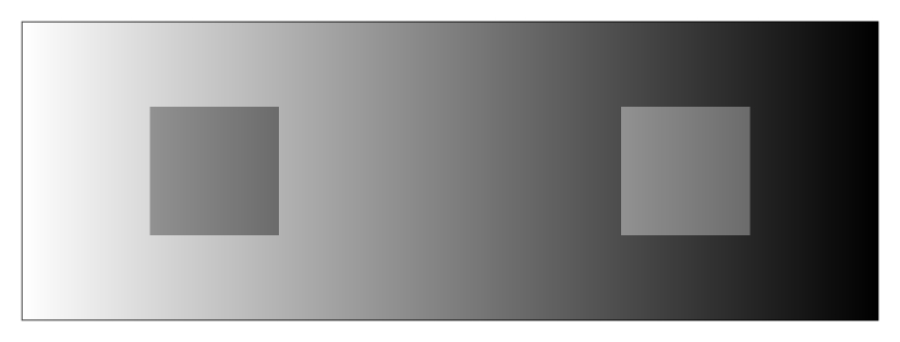 The left square appears to be darker than the right one, though they are identical in luminance gradient.