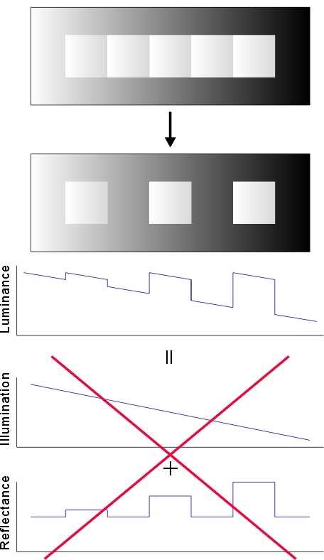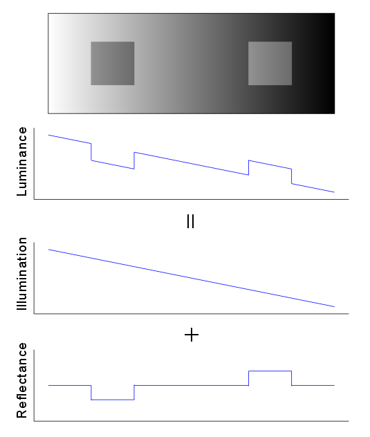 In this model, the luminance profile is explained as the summation or multiplication of illuminantion and surface reflectance.