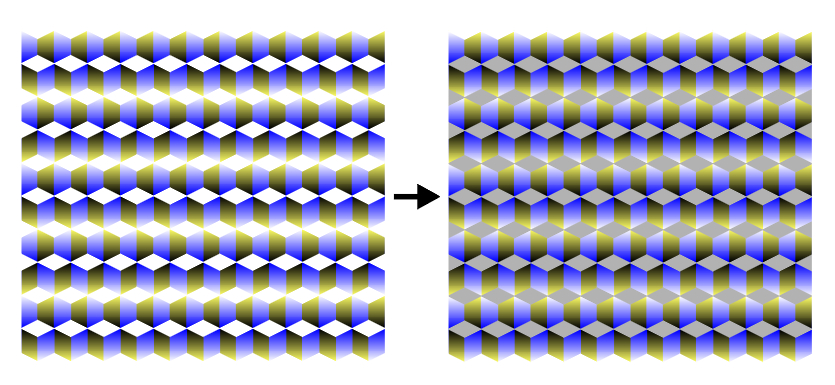 White diamonds are identical within the left image, though they appear to be different. Gray diamonds are identical in the right image, though they appear to be different (Logvinenko illusion).
