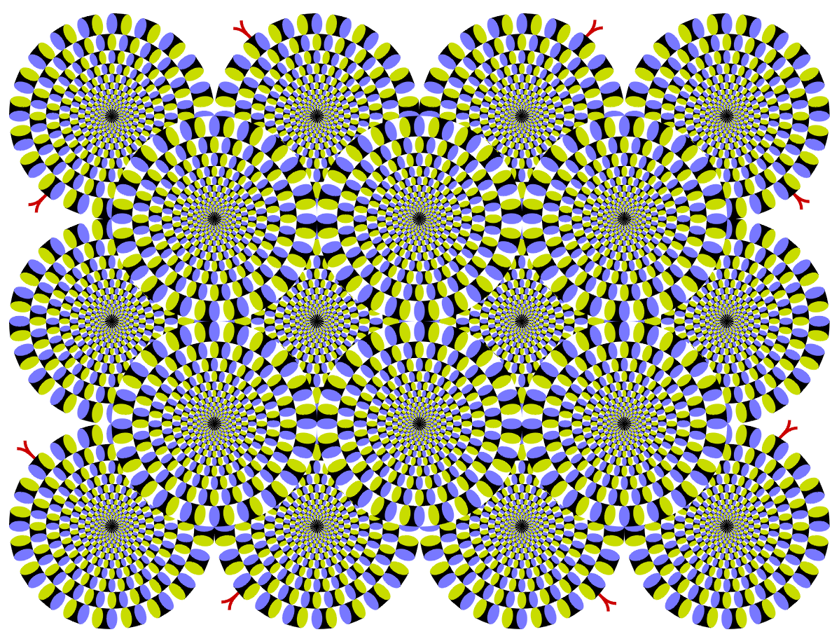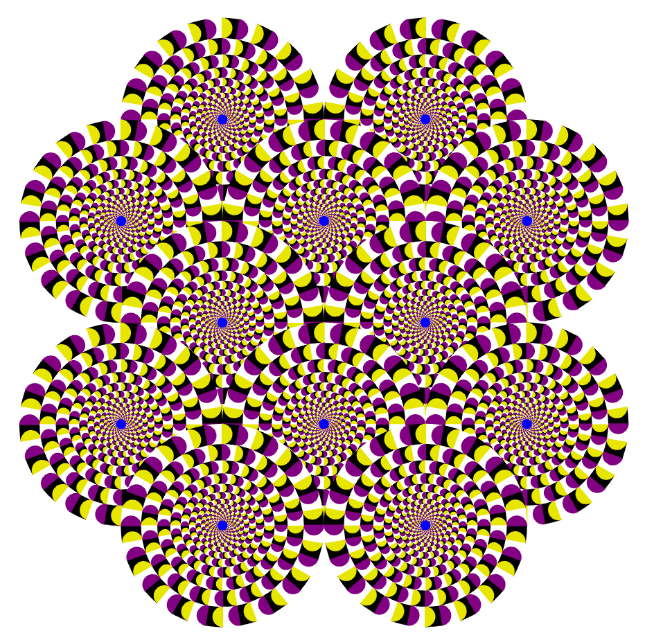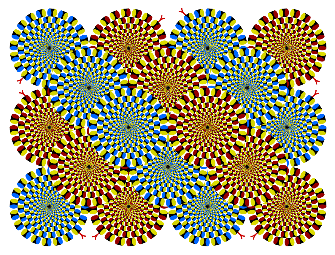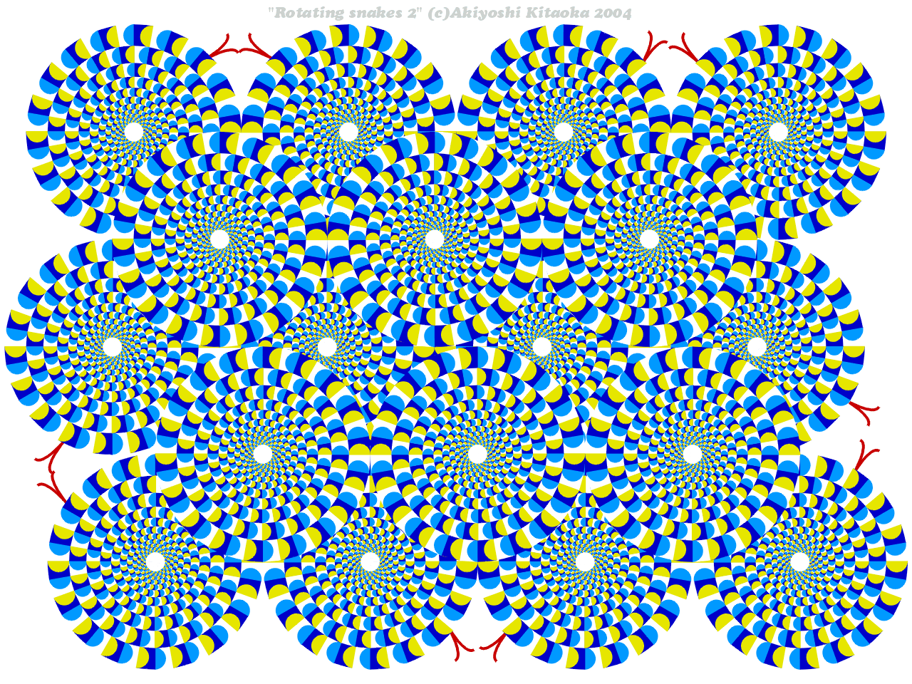 This is a color-changed version of the original "Rotating snakes". I hope this variation gives a more illusion magnitude than does the original.