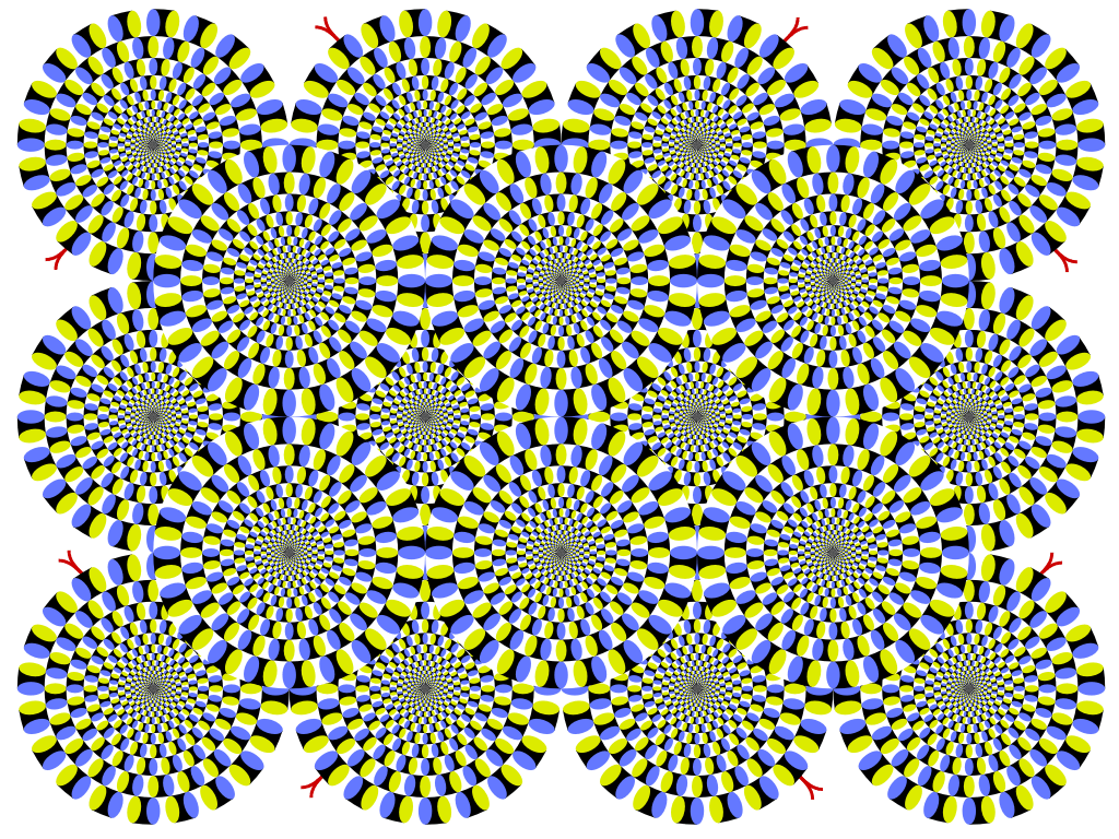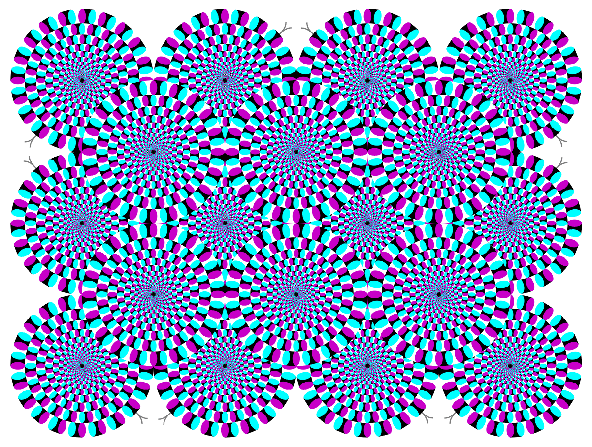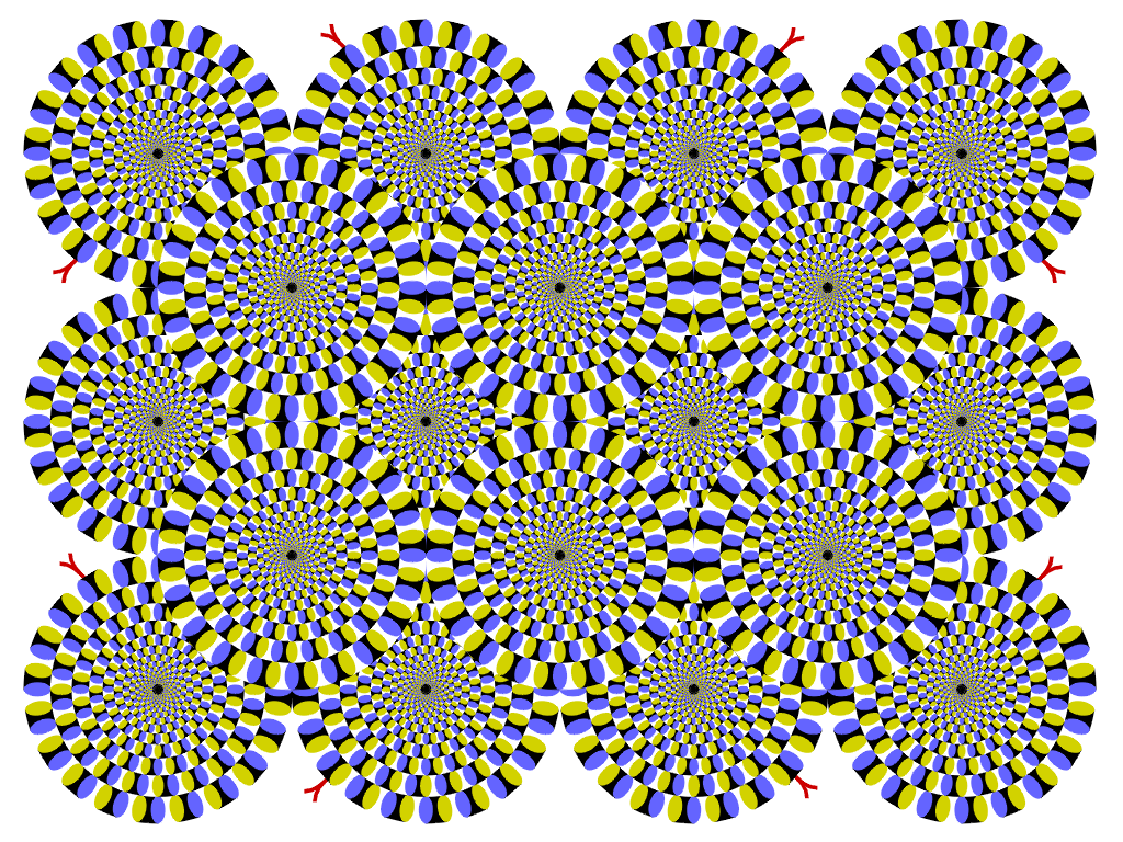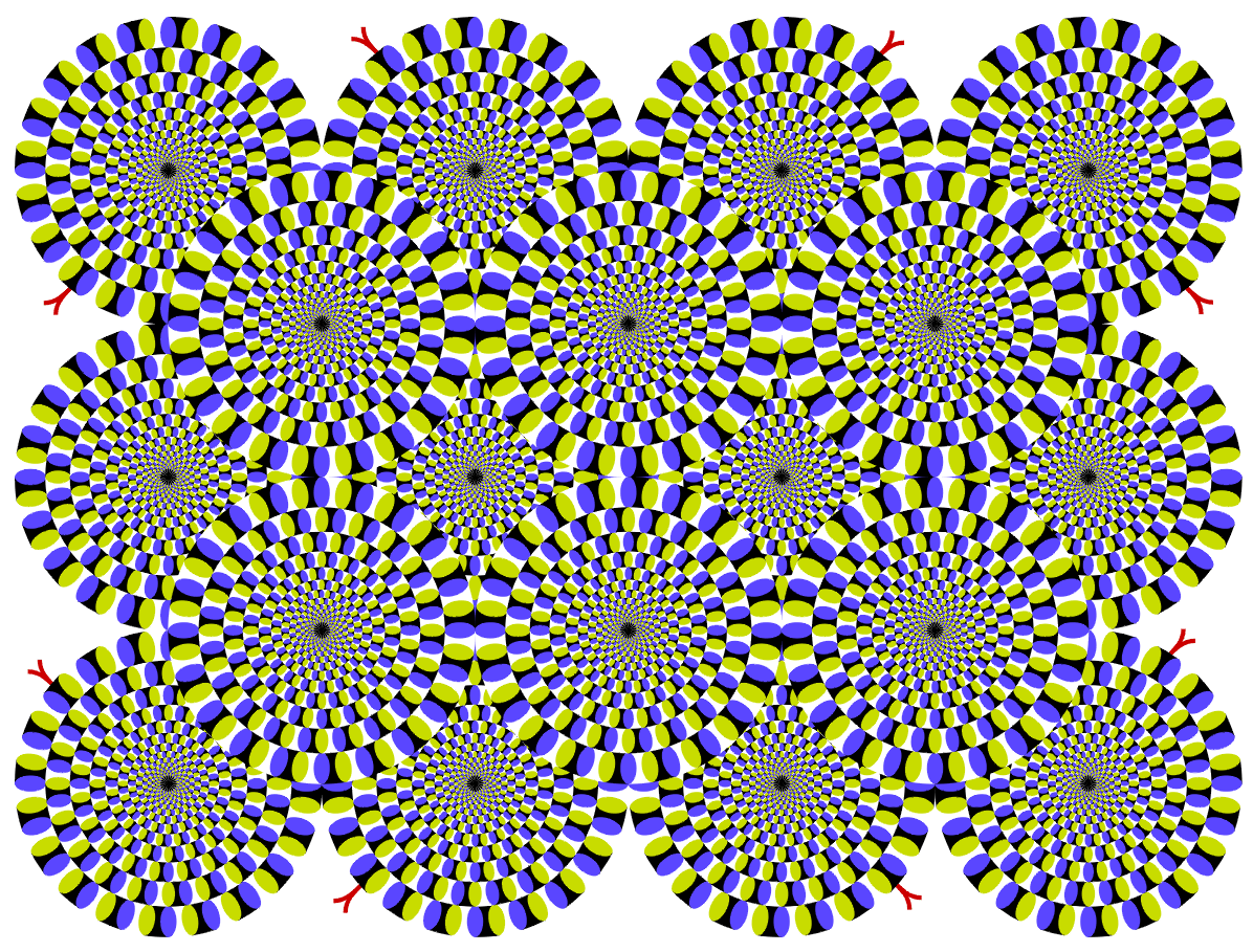 This is a color-changed version of the original "Rotating snakes". I hope this variation gives a more illusion magnitude than does the original.