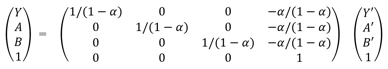 Ycyan は、シアン色の輝度。この逆行列を求める。こうなる。→