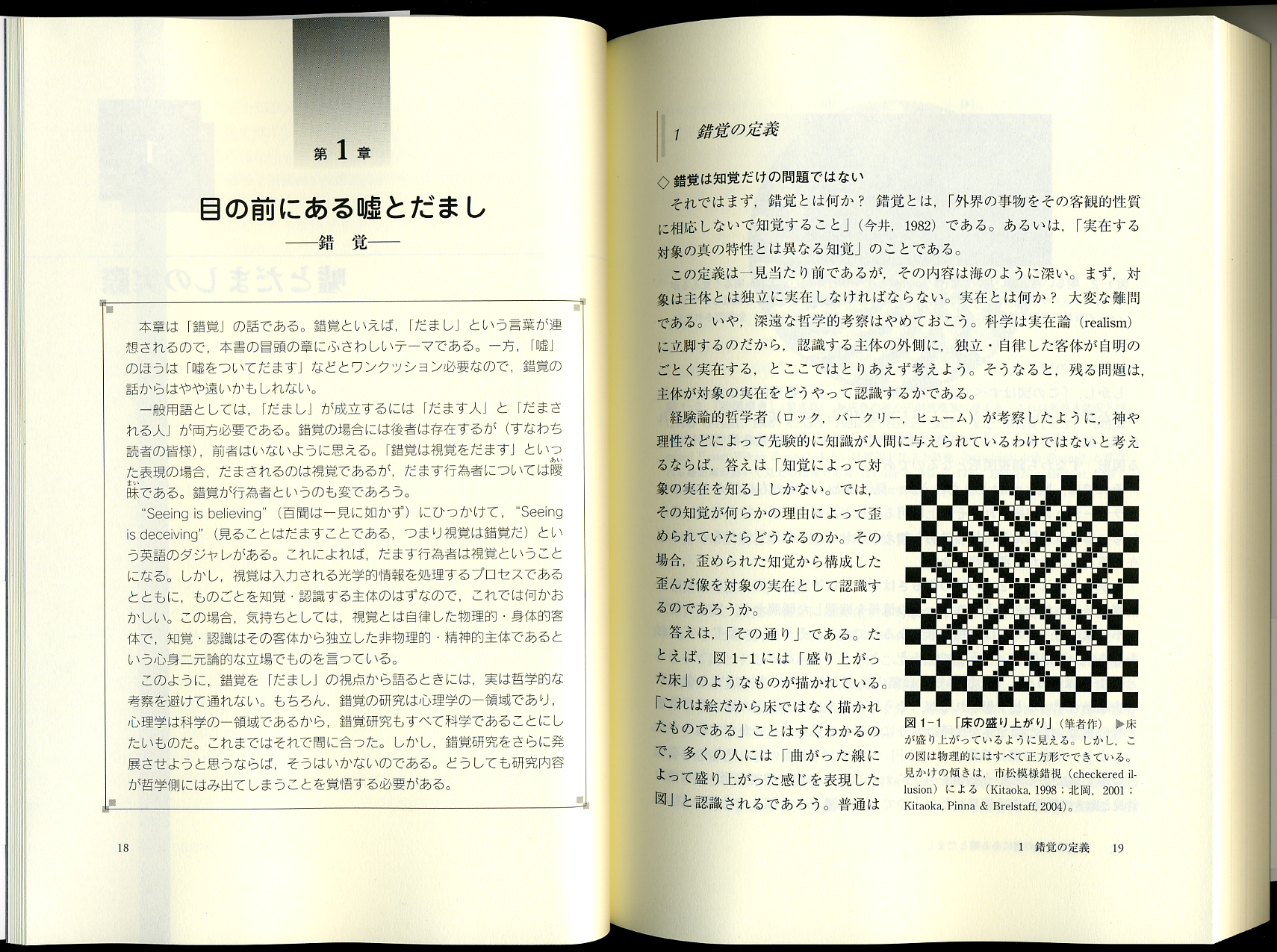 筆者が執筆したのは、第1章「目の前にある嘘とだまし ―錯覚―」(pp.18-32)である。