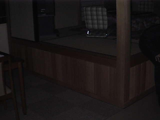 上:畳の部屋でくつろぐ細江先生 右上:一見普通の和室・・。 右:畳の部分が上昇して移動が楽々・・(わかるかな?) |