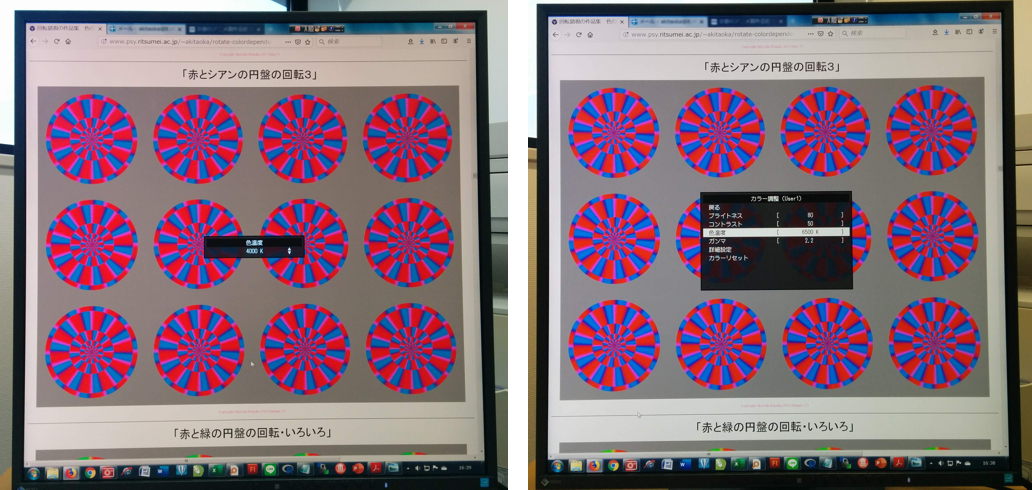 According to another observation, changing the color temperature of a display does not have a remarkable effect on this illusion. So, some mechanism of adaptation to environmental color temperature might be involved in this illusion.