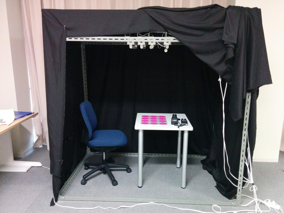 Apparatus: A dark room where illumination of fluorescent lamps can be controlled for illuminance and color temperature