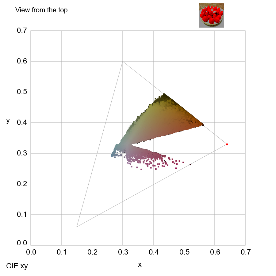 A program to plot pixel colors in the CIE Yxy color space <June 6, 19, 20, 21, 24, 26, August 14, 2022>
