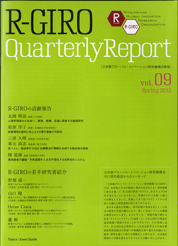 R-GIRO Quarterly Report [立命館グローバル・イノベーション研究機構四季報], 2013, Vol. 09 (Spring 2012), 裏表紙