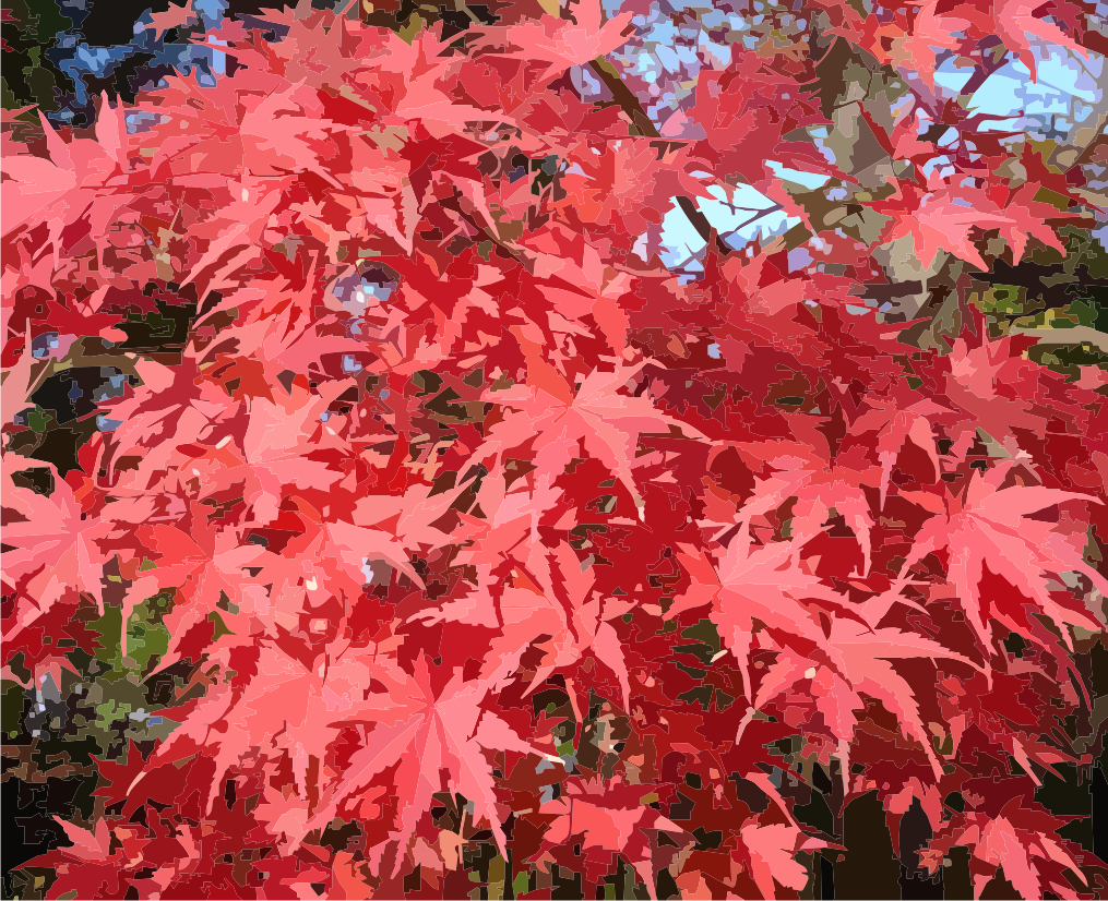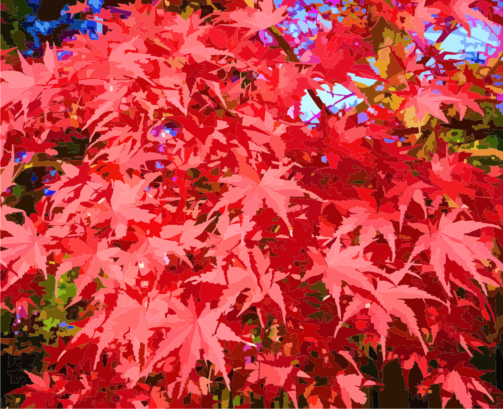 さらにもっと彩度を上げると、美しさが増す。紅葉でない部分の美しさが増したようである。