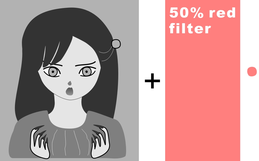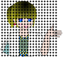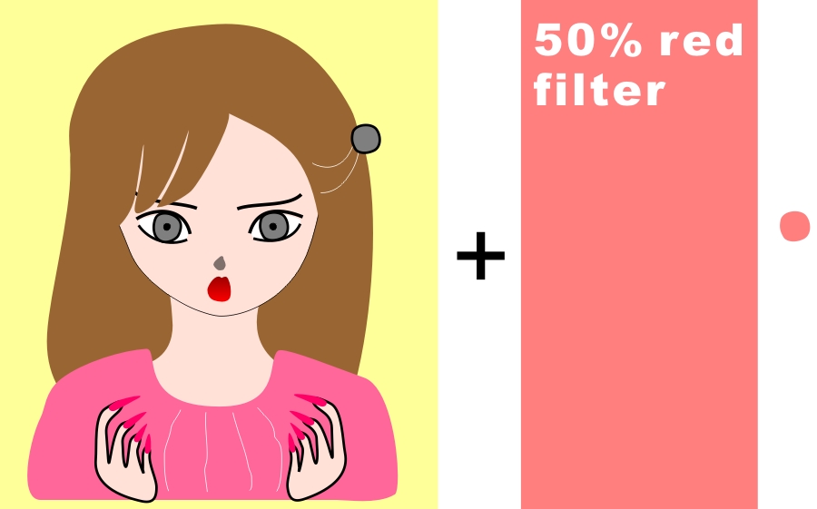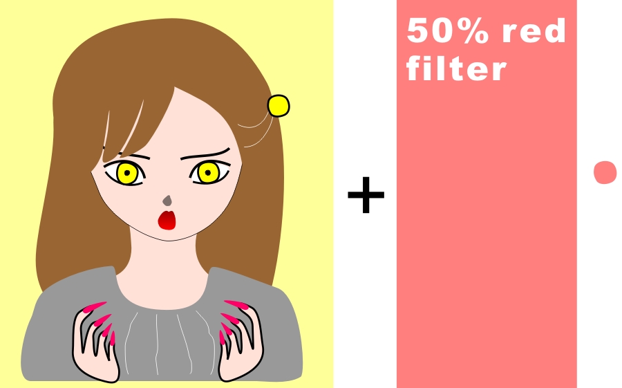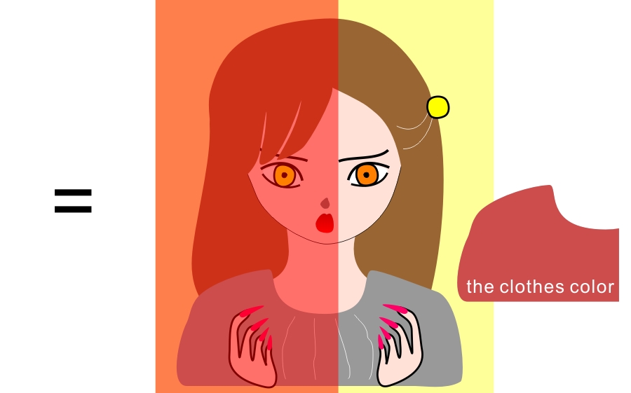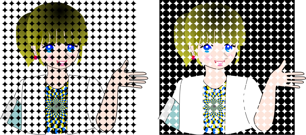 左のお肌は赤っぽく、右のお肌は黄色っぽく見える。ドット色錯視を適用。