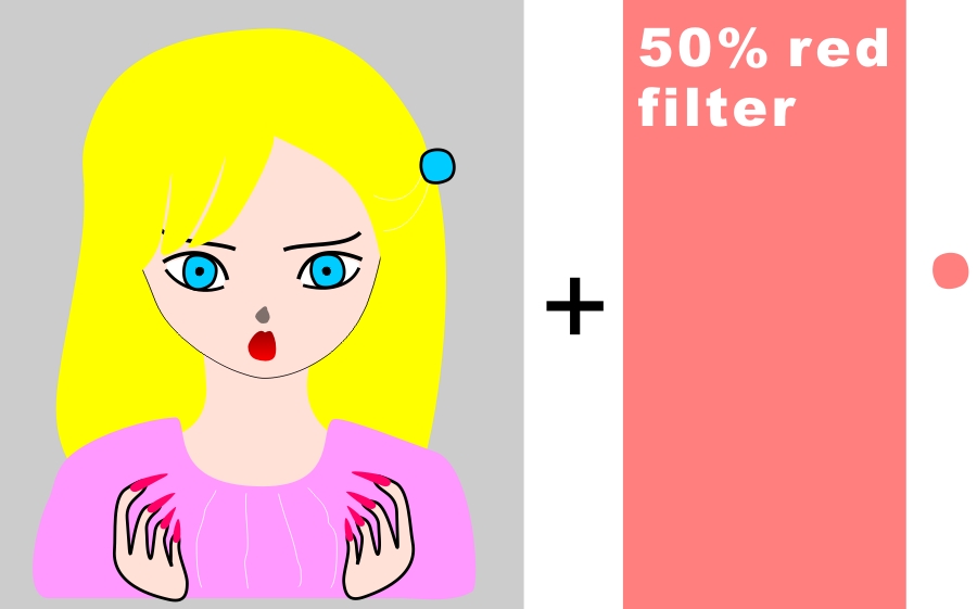 それぞれの画像において、左右の目の色は物理的には同じであるが、色が違って見える画像がある。それぞれの画像の右目(色のフィルターがかかっている側)の色が反対側の髪飾りのビーズと同じ色に見える場合は、色の恒常性が成立していることになる。使用した色は、目とフィルターの色ともに、赤、黄、緑、シアン、青、マゼンタであるから、6 x 6 = 36 個の画像がある。作者には青の恒常性がイマイチに見えるが、観察者によって違いがありそうである。PCディスプレー(MITSUBISHI Diamondcrysta RDT1713S)で見ると、右目が黄(左から2番目の縦の列)の色の恒常性がフィルターの色にかかわらず優れているが、カラーレーザープリンタ(XEROX DocuPrint C3540)で印刷してみたところ、フィルターが緑の画像(左から2番目で上から3番目)の効果が弱かった。