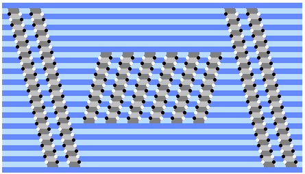 Rows are parallel but appear to tilt clockwise (top, center, bottom) or counterclockwise (the rest two), which is the Zöllner illusion. Moreover, anomalous motion illusion is observed, too.