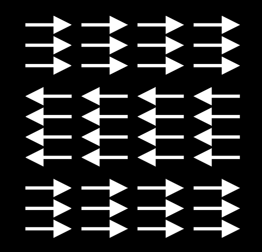 上の列は右に動いて見え、下の列は左に動いて見える。
