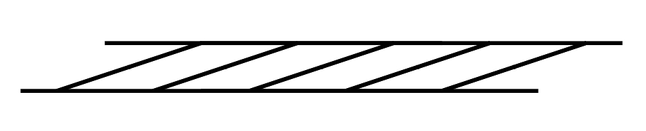 左下と右上の斜線は一直線上にあるが、右上の斜線は相対的に右の方にずれて見える(ポッゲンドルフ錯視)。この図には動く錯視があって、右上の斜線は右に、左下の斜線は左に動いているように見える。