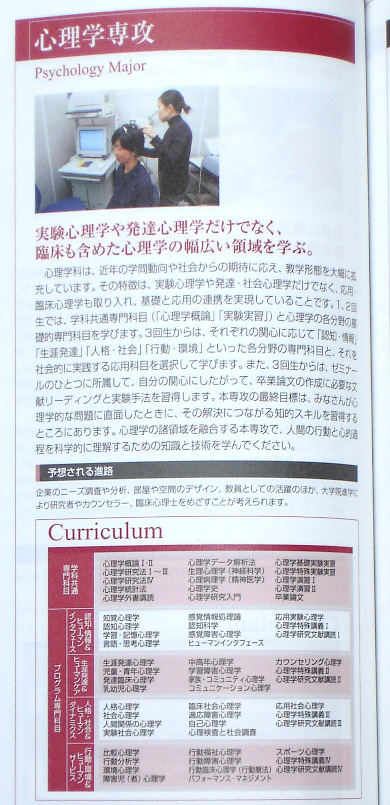 心理学専攻のページです。来年度は講義名称の一部変更があるかもしれません。
