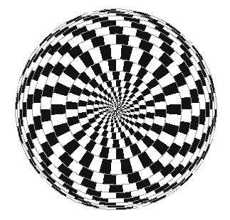 同心円が右に回転して中心に向かう渦巻きに見える。