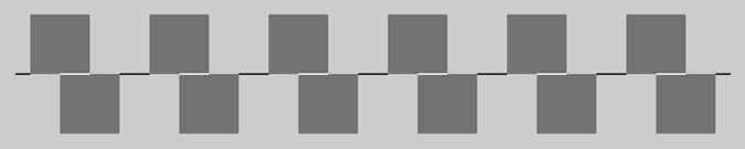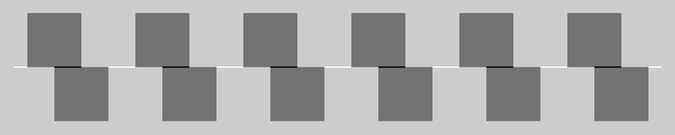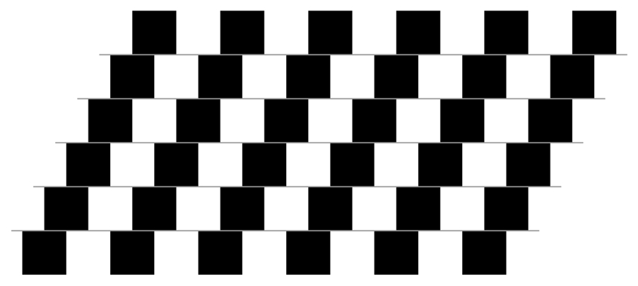 動いて見える。もちろん、カフェウォール錯視であるから、縦の灰色の線は垂直でお互いに平行である。