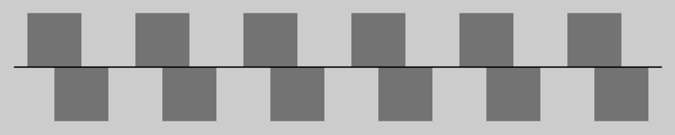白と黒の線分によるカフェウォール錯視 2 の4要素繰り返しを図示
