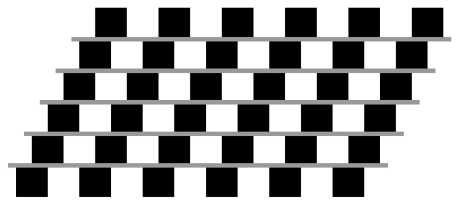 水平に描かれた灰色の横線がすべて右下がりに傾いて見える。