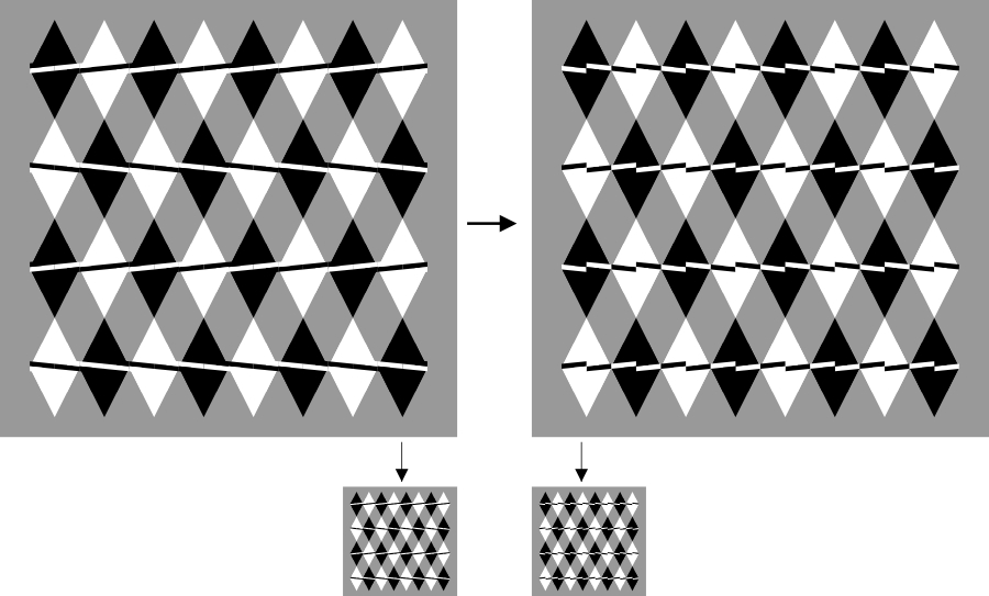 Rows of oblique edges are horizontally aligned but appear to tilt alternately. The apparent tilt is the same orientation as the tilt of each obliques.