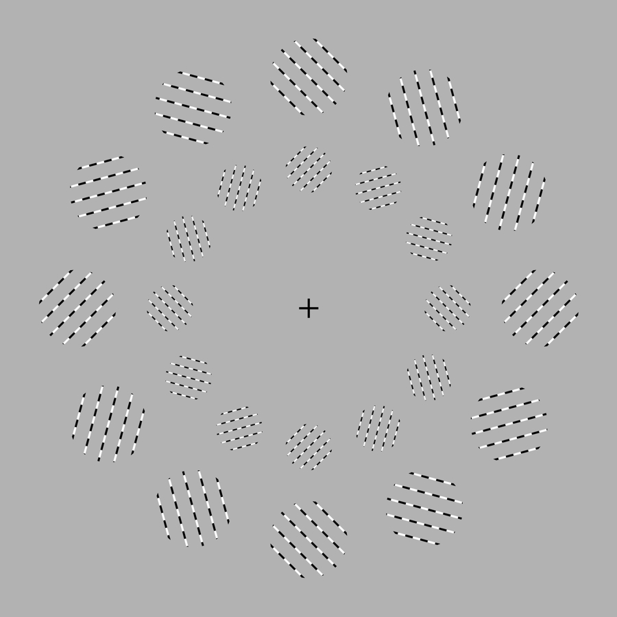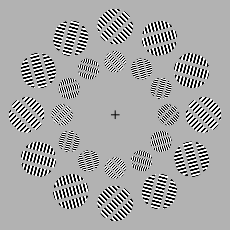 円形領域はやはり動いて見える。あるいは錯視量増大。