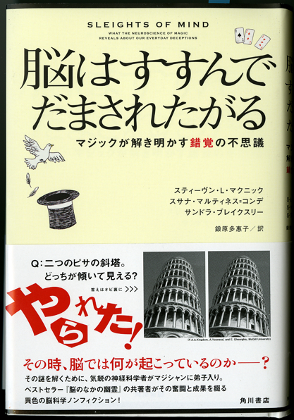 マクニック,スティーヴン・L.〈Macknik,Stephen L.〉 マルティネス=コンデ,スサナ〈Martinez‐Conde,Susana〉 ブレイクスリー,サンドラ〈Blakeslee,Sandra〉【著】 鍛原 多惠子【訳】 (2012) 脳はすすんでだまされたがる―マジックが解き明かす錯覚の不思議 角川書店 ISBN: 9784041101599 2100円