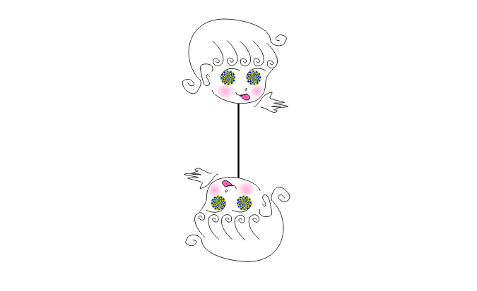 女の子が弧を描くような軌道に沿って往復運動して見える。上と右、下と左の組み合わせの場合と、上と左、下と右の組み合わせのどちらにでも見える。画像は500msずつ交替に提示している。