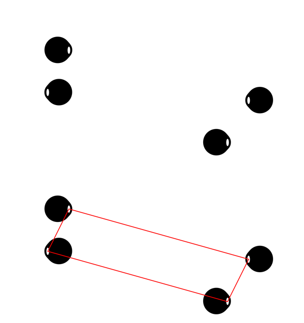 上図では、レンズは仮想の平行四辺形の頂点上にあるが、上に開いた四辺形の頂点上にあるように見える。