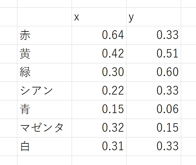 sRGBのCIE xy 色度図