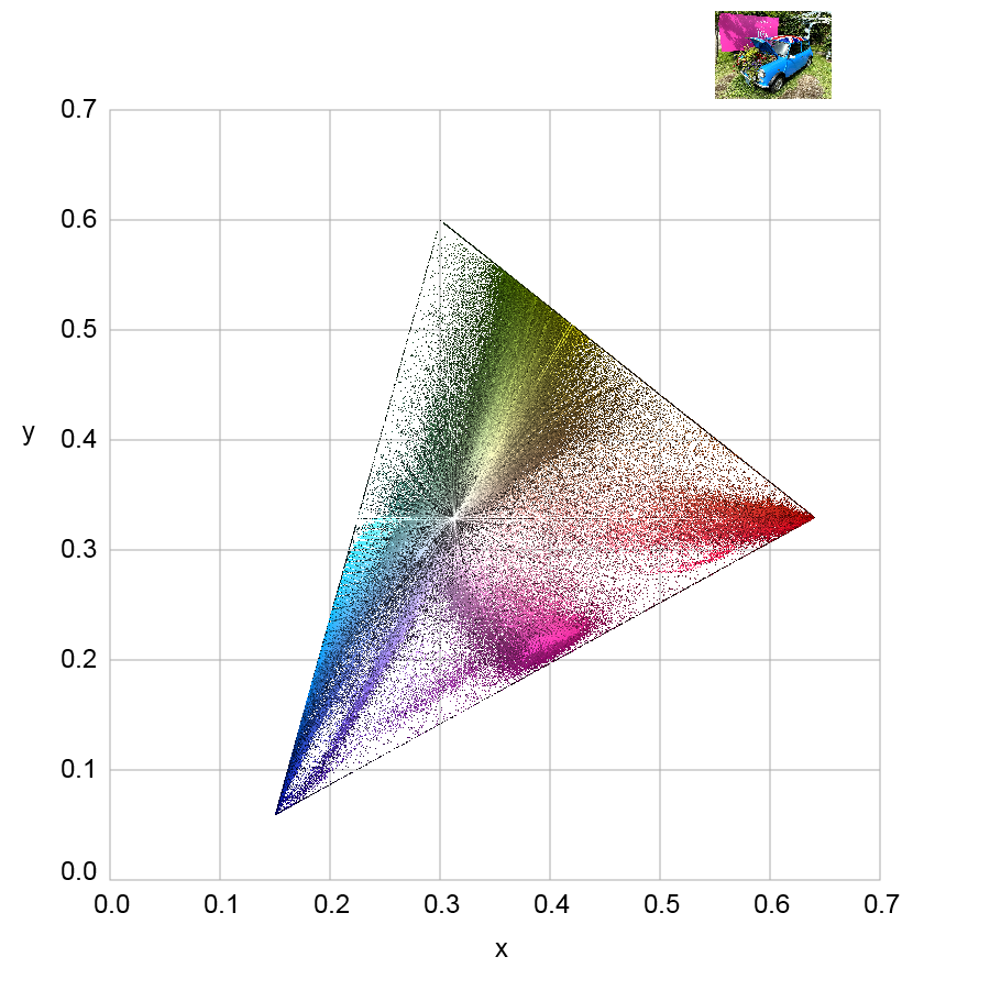 任意の画像の全画素をCIE xy 色度図上に配置するウェブプログラムが完成!