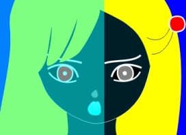 それぞれの画像において、左右の目の色は物理的には同じであるが、色が違って見える画像がある。それぞれの画像の右目(色のフィルターがかかっている側)の色が反対側の髪飾りのビーズと同じ色に見える場合は、色の恒常性が成立していることになる。使用した色は、目とフィルターの色ともに、赤、黄、緑、シアン、青、マゼンタであるから、6 x 6 = 36 個の画像がある。作者には青の恒常性がイマイチに見えるが、観察者によって違いがありそうである。PCディスプレー(MITSUBISHI Diamondcrysta RDT1713S)で見ると、右目が黄(左から2番目の縦の列)の色の恒常性がフィルターの色にかかわらず優れているが、カラーレーザープリンタ(XEROX DocuPrint C3540)で印刷してみたところ、フィルターが緑の画像(左から2番目で上から3番目)の効果が弱かった。