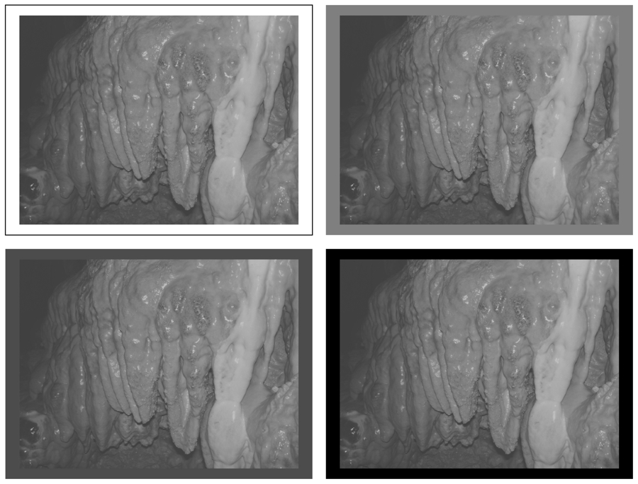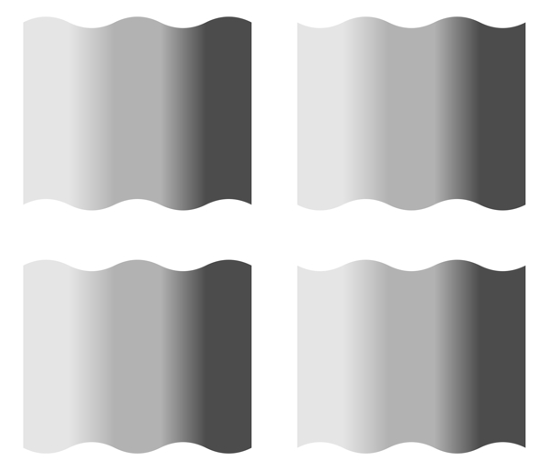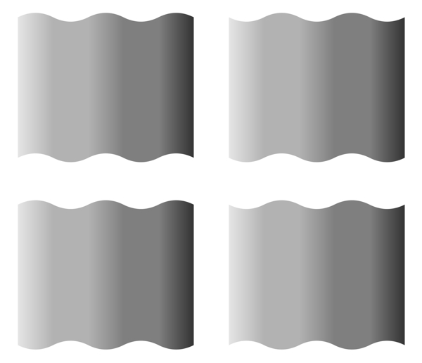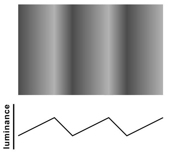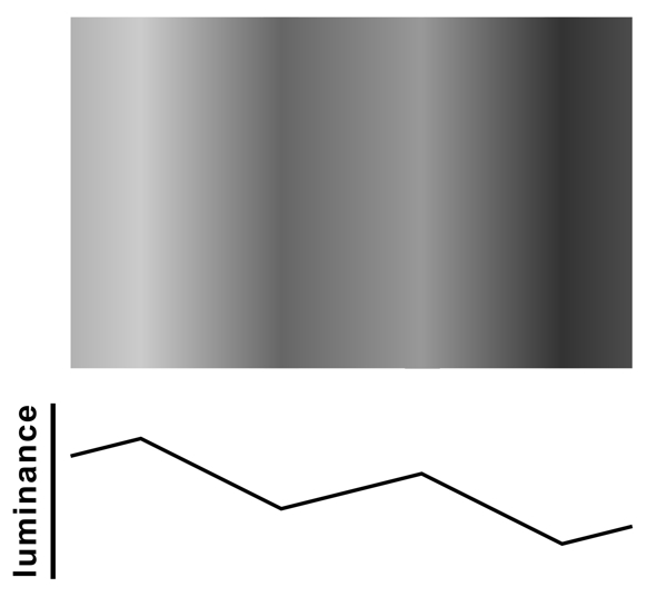 輝度勾配がグラフ上で下に凸の時、暗い錯視帯が見える別の例と考えられる刺激布置。