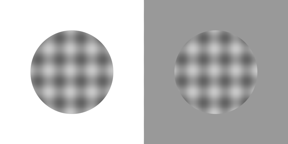 左右の円内のコントラストは同じであるが、左側のコントラストが低く見える。