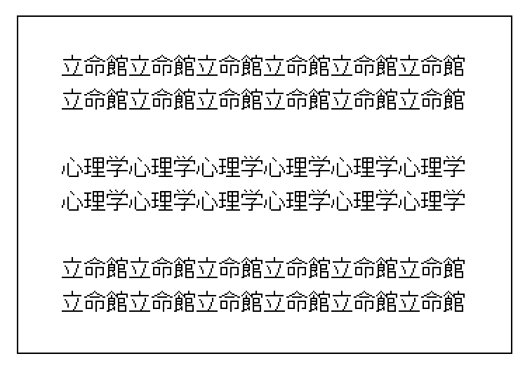 「立命館」は右に、「心理学」は左に傾いて見える。