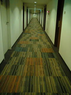 この廊下は、水戸駅南口の新しいホテルの廊下だそうで、実際よりも長く見えるという。