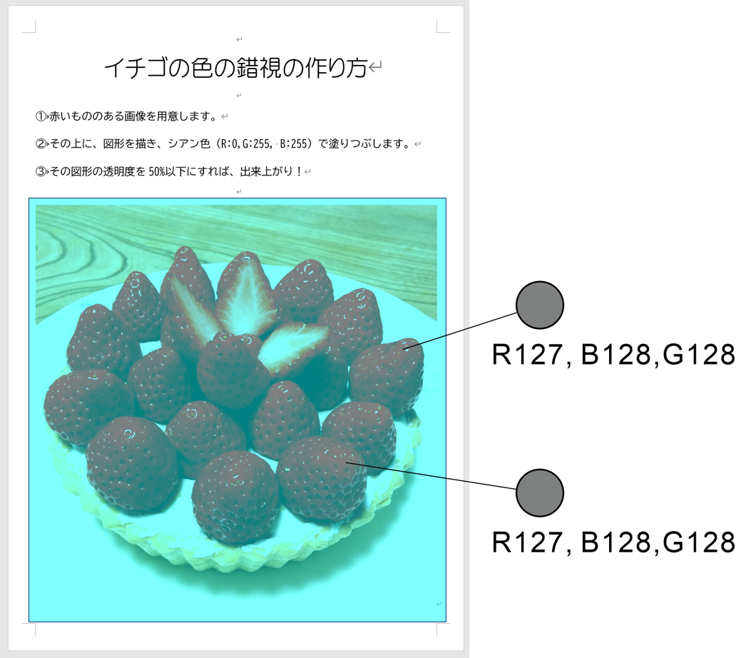(2) イチゴの色の錯視の作り方