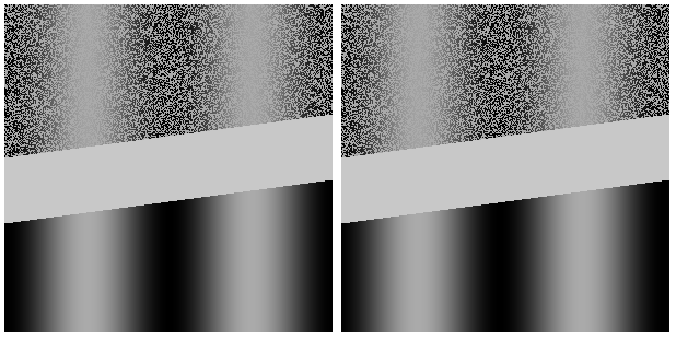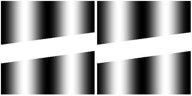 Fusing the two figures, you see two lines of "mist" in front of the background. These are stereoscopic chimera phantoms.