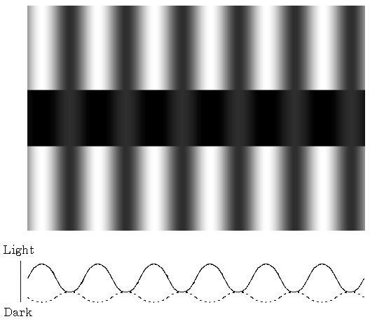 It appears that there are light and dark regions in the gray surround though they are actually of the same luminance (Craik-O'Brien-Cornsweet's effect). When an occluder is placed, photopic phantoms appear. This means that contrast polarity of photopic phantoms is not determined by the (physical) luminance of the grating but by the (perceived) lightness of the grating.