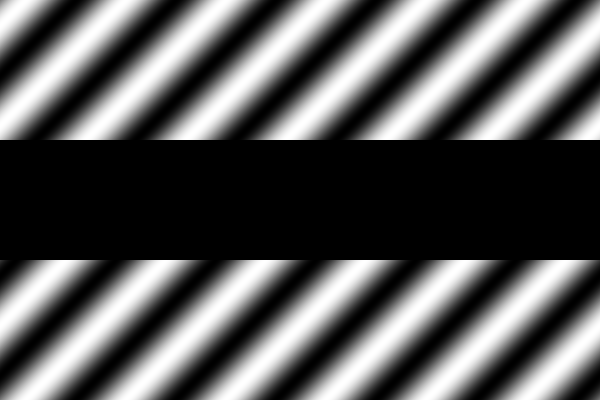 When the occluder is placed obliquely on a grating, completion occurs across alinged gratings as well as misalinged (vertical) ones for phantoms. On the other hand, for grating induction, completion occurs only across the latter.