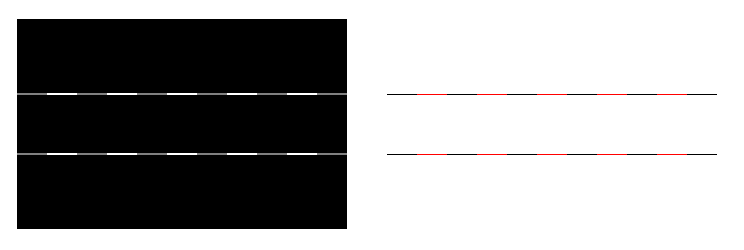 Fusing the two figures, you see two lines of white phantoms in front of the black background.