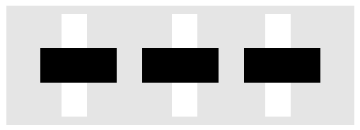 An example of Petter's effect, in which the thick vertical rectangle tends to be perceived in front of the thin horizontal rectangle.