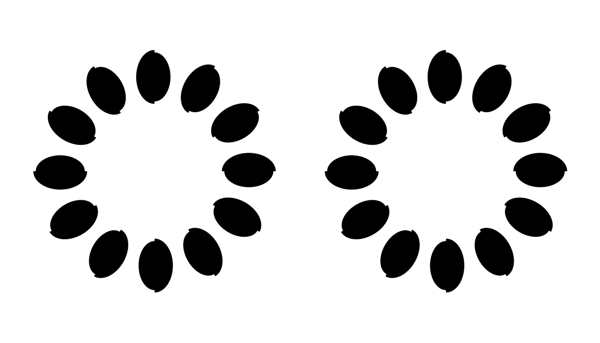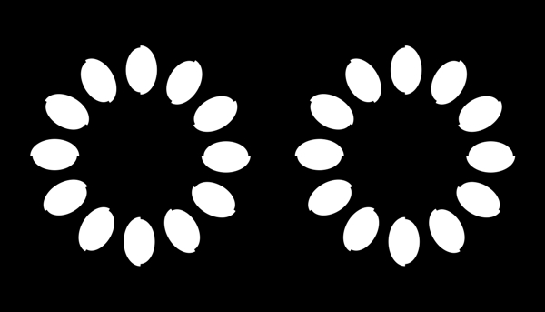 左のリングは反時計回り、右のリングは時計回りに回転して見える。