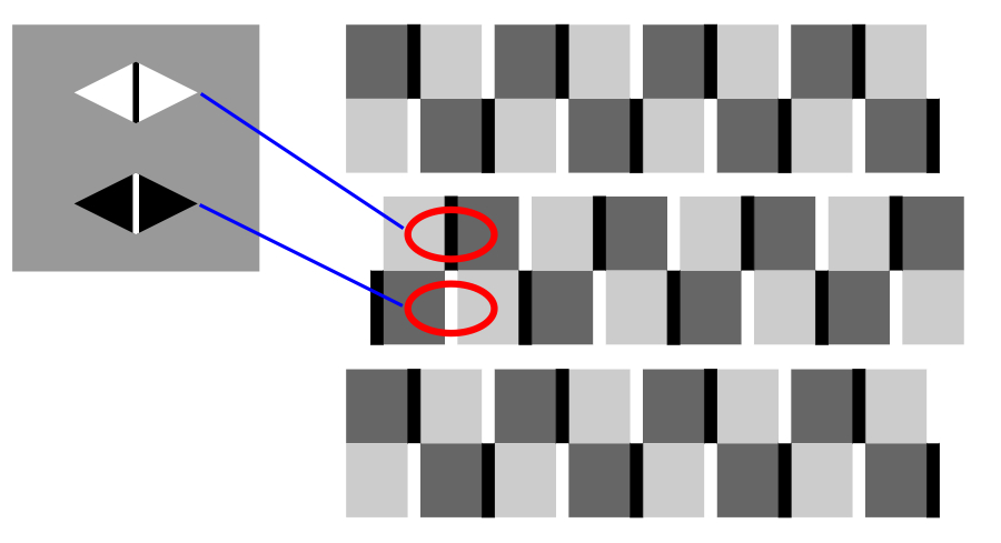cf. Gregory, R. L. and Heard, P. (1979) Border locking and the Café Wall illusion. Perception, 8, 365-380.
