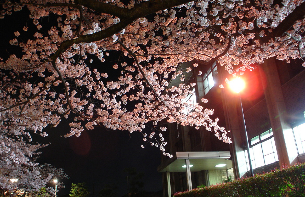 夜の啓明館(心理学専攻の実験室がある)(2007年4月5日)