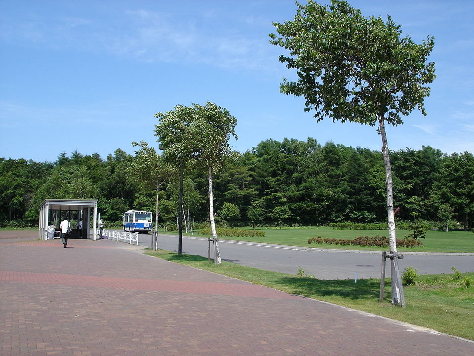 立命館慶祥中学校・高等学校のバス停が水没したように見える。