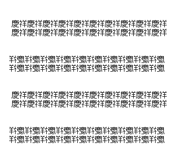 「慶祥」文字列は右上がりに見える。それを左右反転させると右下がりに見える。