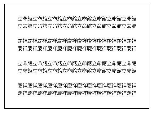 「立命館」文字列は右下がりに、「慶祥」文字列は右上がりに見える。