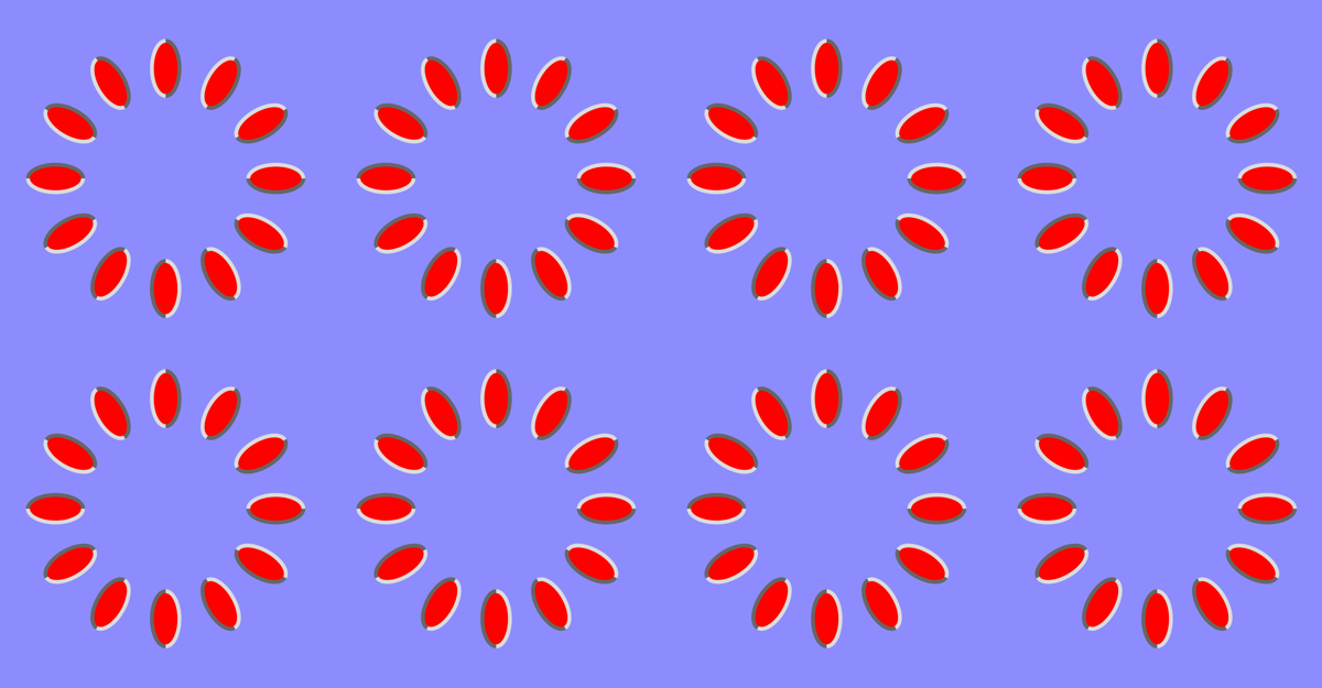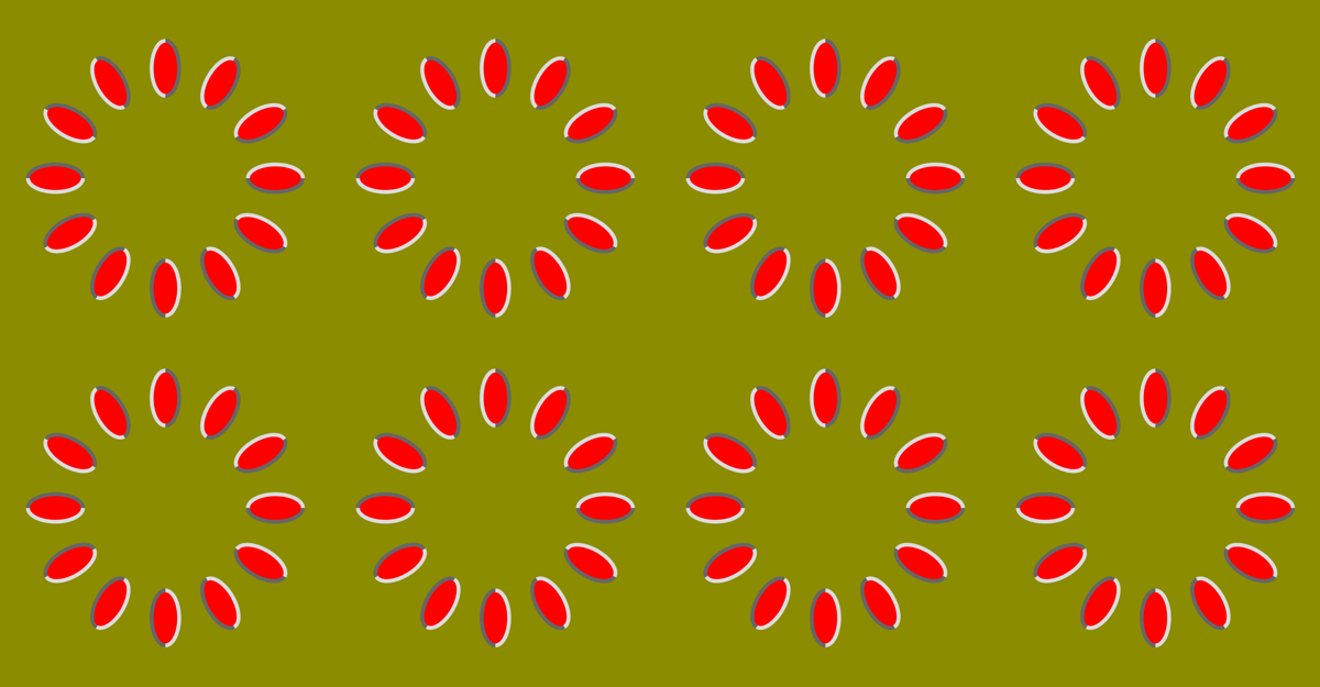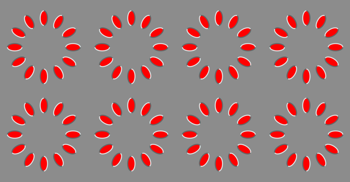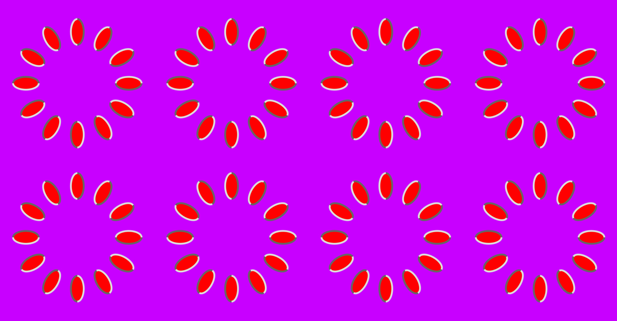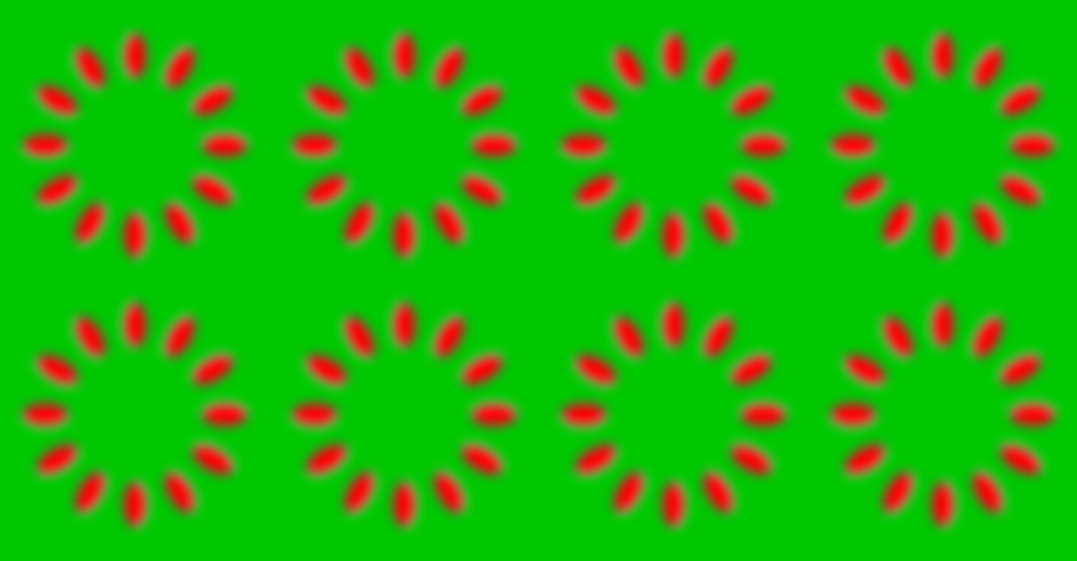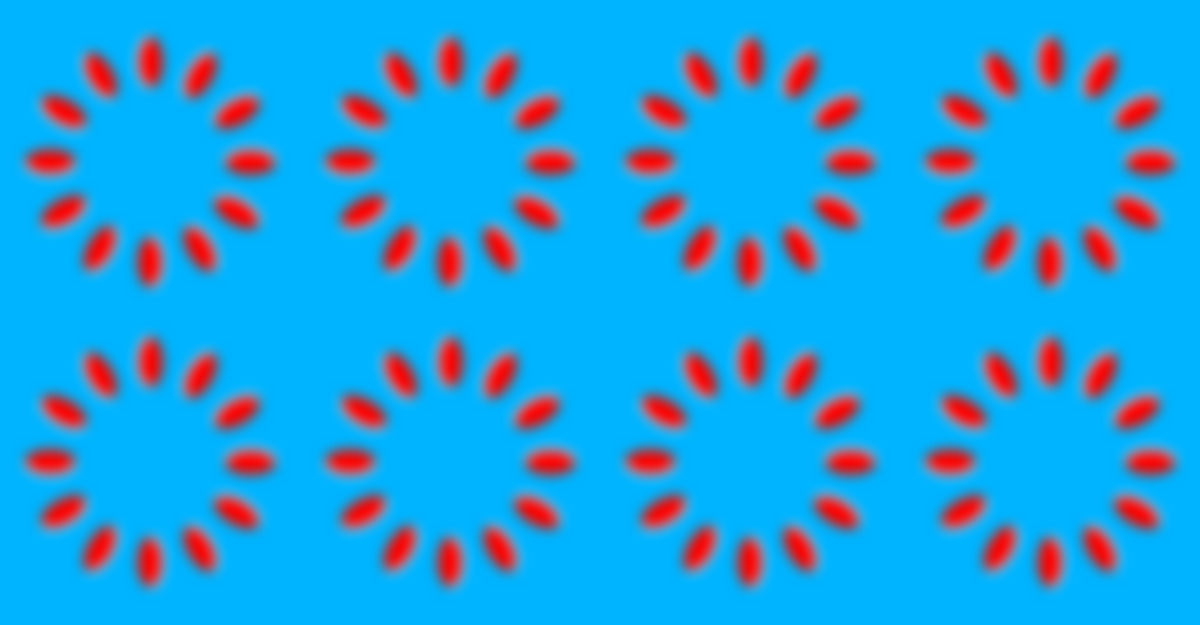 The upper row appears to wobble rightward whereas the lower one to move leftward.