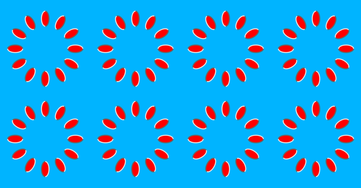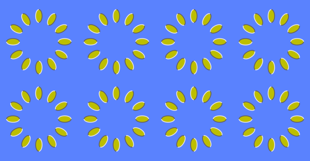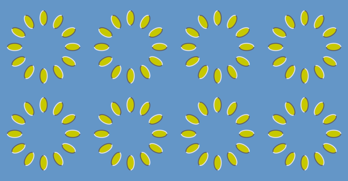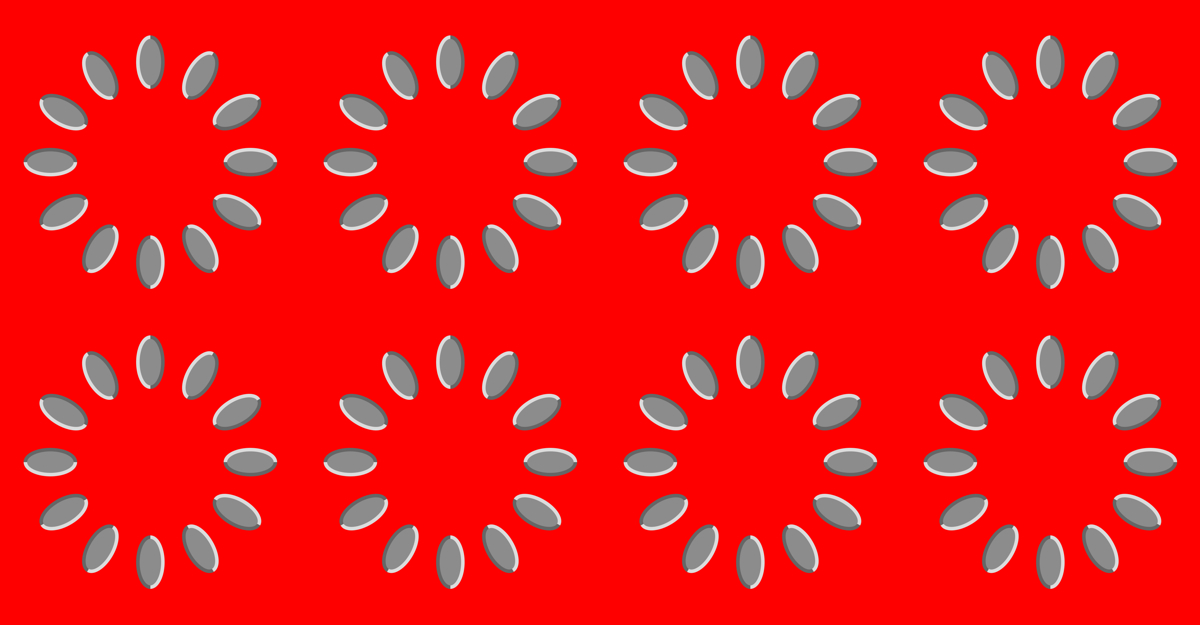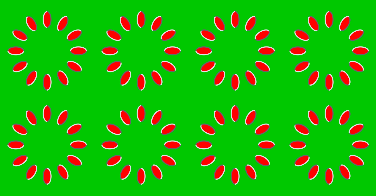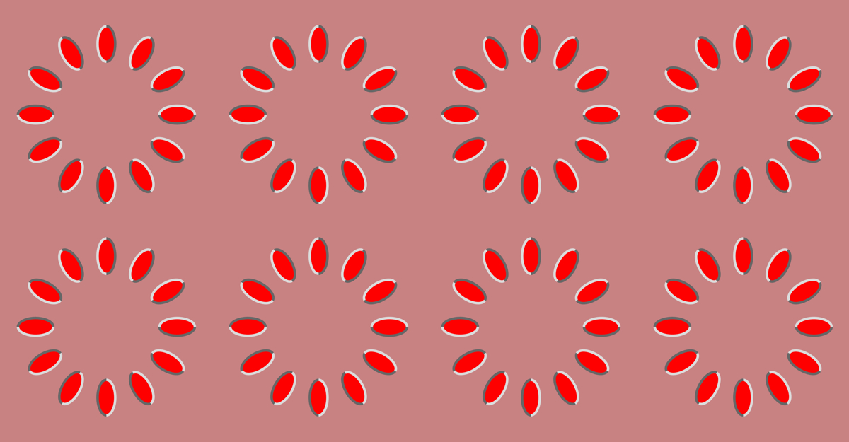 The upper row appears to wobble rightward whereas the lower one to move leftward.